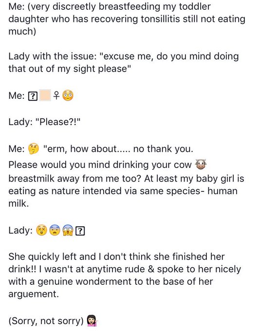 Seriously, people need to get over #breastfeeding! It's more natural than drinking cows milk. pic.twitter.com/Fv3PwJpm2P