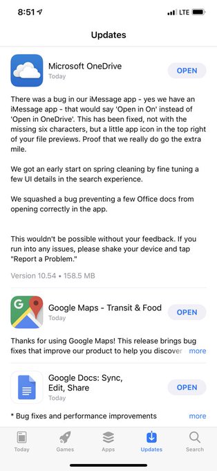 Can I give a(nother) shout out to the @onedrive dev team? Good, informative update notes with the human touch always brighten my experience. The app is great too but we’re talking about the little things here. #updatemagic #bugfixes pic.twitter.com/EkvMnbMCpa