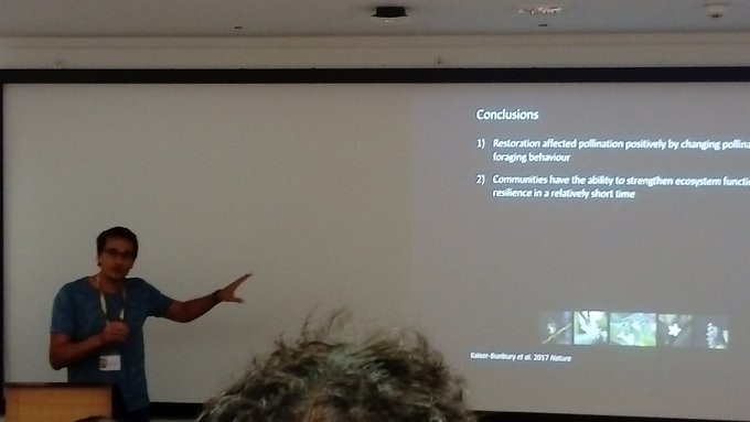 #conservationoptimism at #islandinvasives Chris Kaiser-Bunbury shows invasive plant control improves pollination networks in the Seychelles pic.twitter.com/S32rQxhSra