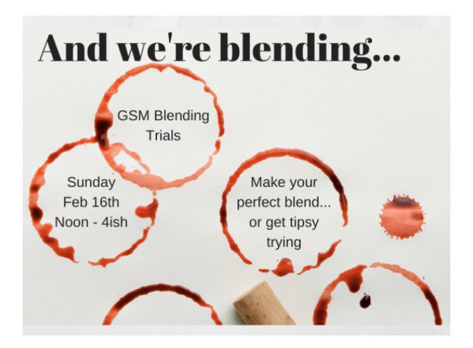 On February 16th from Noon – 3ish, we are holding our GSM Blending Trials at the winery in Geyserville. The event is sold out but we are making a waiting list in case space opens up. RSVP to brian@cruxwinery.com to get on the wait list. #cruxwinery #gsmblending pic.twitter.com/V2rIQM0Mws