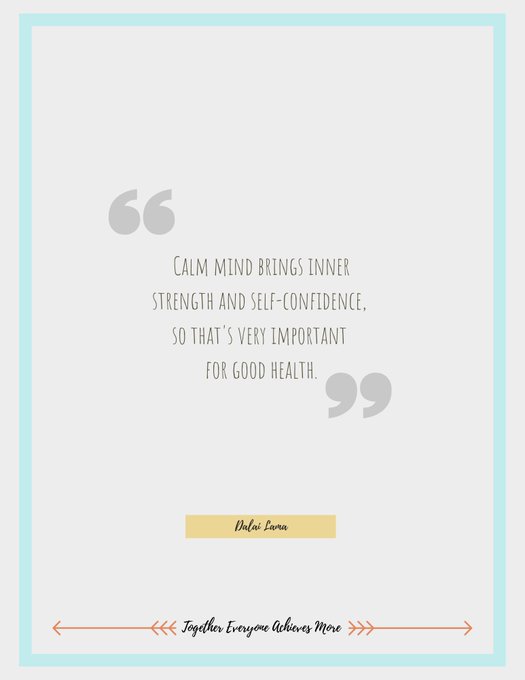 Calm mind brings inner strength and self-confidence. So that's very important for good health. #dalailama pic.twitter.com/VhuzBdmprd
