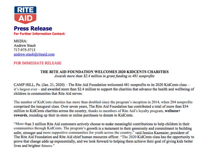 Thank you to @riteaid for including our agency in their 2020 #Kidscents class! 7 + years Rite Aid Foundation contributed more than $34 million to Kid Cents charities nationwide kidcents.riteaid.com Read more: