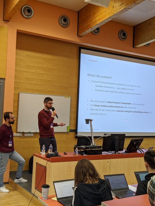 Doing crazy things in the deadline scheduler, with Juri Lelli and Daniel Oliveira #DevConf_CZ pic.twitter.com/utjrSzbI3y