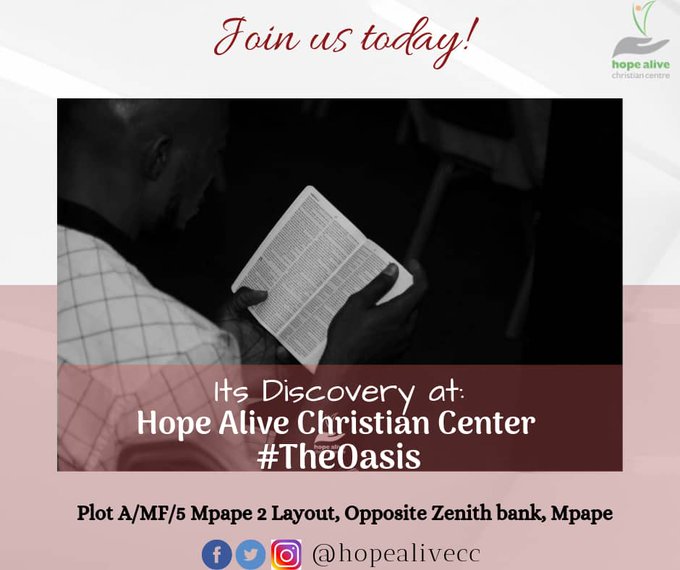 Join us by 6:00p.m today for another refreshing time in the presence of God as we delve into His word for #Discovery.