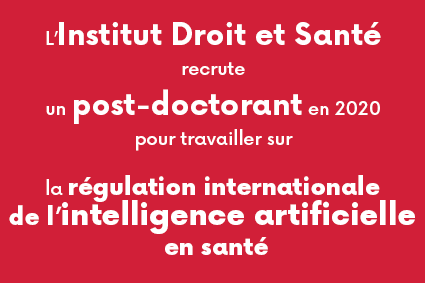 L'@Instidroitsante recrute en 2020 un post-#doctorant sur le thème de la "régulation internationale de l’#IA en #sante ".