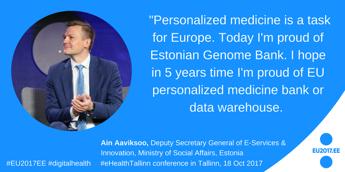 Personalized medicine is a task for Europe, said @ainaaviksoo of 🇪🇪at #eHealthTallinn #digitalhealth #EU2017EE pic.twitter.com/0xQIQqI8Yd