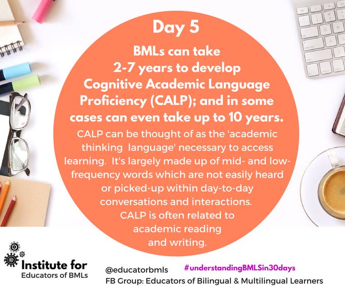 Did you know CALP takes much longer to develop than BICS? #understandingBMLsin30days #ELL #ESL #EAL #BMLs pic.twitter.com/7xuXTjoFjb