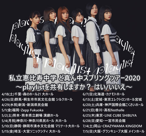 「私立恵比寿中学 ど真ん中スプリングツアー2020~playlistを共有しますか? はい/いいえ~」オフィシャル先行は、本日2月5日(水)23:59まで!!