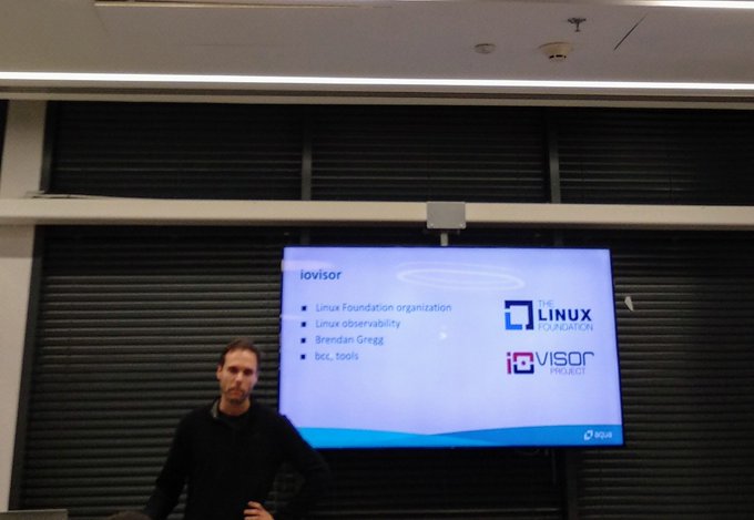 @itaysk doing some well-deserved promotion for @IOVisor and @brendangregg #eBPF pic.twitter.com/MVzcUrp2Hm