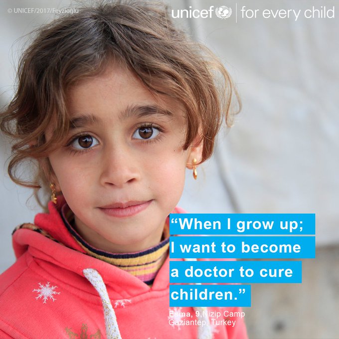 Esma, 9, wants to be a doctor when she grows up. #Foreverychild, #education. v/@unicefturk pic.twitter.com/FJxQNDavVy