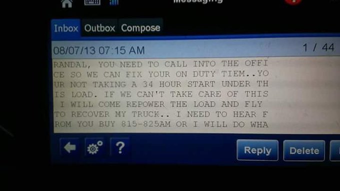 The carrier is so nice to monitor the drivers #ELD and offer to help “fix” his on duty time to deliver in time so as to not lose his truck. pic.twitter.com/fwcL7aCMxl