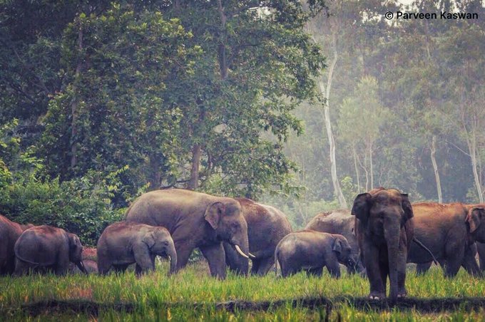 Few #elephants from the #family will always play this role. They will keep a watch while herd moves. If herd is big, say 80-100 there will be more guards. At least one strong bull will trail herd. It will keep an eye from behind & keep pushing laggards. #nature pic.twitter.com/a2kSE9Bb1e