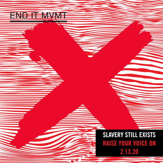 The End It Movement will host its annual #enditmovement day on February 13. This movement shines a light on modern-day slavery by having participants draw red ❌’s on their hands and posting a picture to social media using the hashtag #enditmovement. pic.twitter.com/UZphN9tmC2