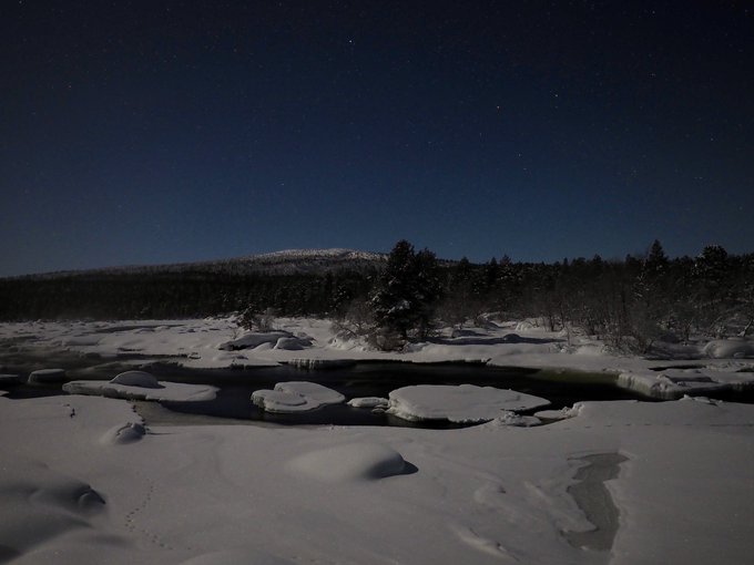 No Aurora for me yet, but a forest snowshoe hike last night gave beautiful moonlit views. @pollymm stayed at the hotel and yep. She saw the Aurora. #teenybitenvious #Inari #Finland pic.twitter.com/coRC8kvPkm