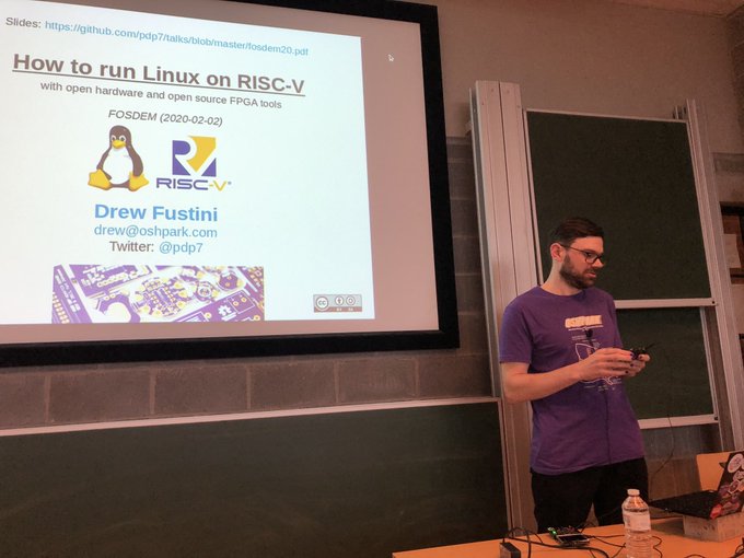 Oh the excitement! Linux on RISC-V begins today for me! #FOSDEM2020 pic.twitter.com/cVIcEWj0zr