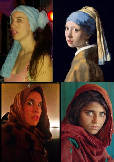 Hannah thought it would be funny to dress up as #GirlWithPearlEarring. It looks frighteningly realistic! @hannakells pic.twitter.com/QTgiMtsKZt