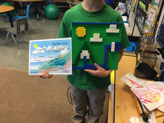 He made the water cycle out of LEGOs #sd33learns #grade2 #science #learning pic.twitter.com/2j02el1UoU