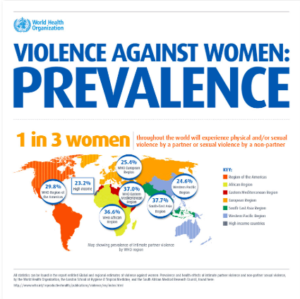 1 in 3 women experience intimate partner violence or sexual violence globally.