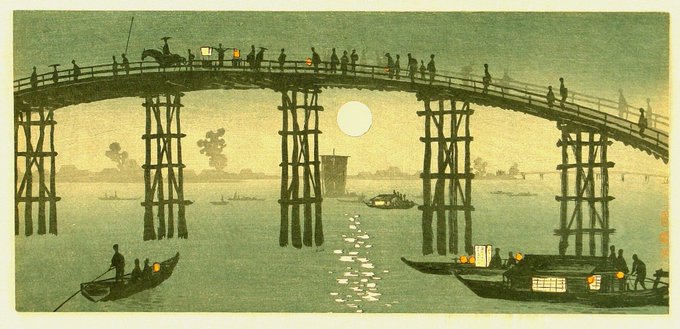 Kawase Hasui, Full Moon at Gamo, 1932. #japaneseart #ArtistinFloatingWorld pic.twitter.com/AgY9lUpyja