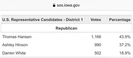 Sorry #SwampRats Iowa SOS Office held another Youth Straw Poll Tuesday. 3 candidates on the Republican side this time. Guess who's🥇again. Only candidate in #IA01 race with plans makes us💪Check them out at hansenforcongress.com then join us #KAG #KAG2020LandslideVictory pic.twitter.com/T6OxMAgmSQ