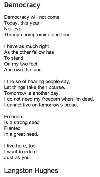 Happy Birthday Langston Hughes. Share your favorite Hughes poem, play, story, etc. We choose the always timely, Democracy #LangstonHughes pic.twitter.com/dvHiv18dxY
