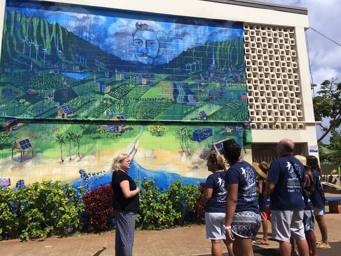 This mural was made possible by @LunaliloElem community. The King watches over the land. Highlights sustainable living. #MalamaHonua pic.twitter.com/kwCvP1895i