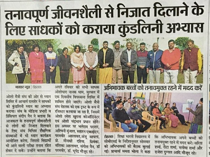 Beautiful media coverage by Dainik Bhaskar for sunday #meditation at rohtak @SiddharthAulia pic.twitter.com/B9M11GfTOR