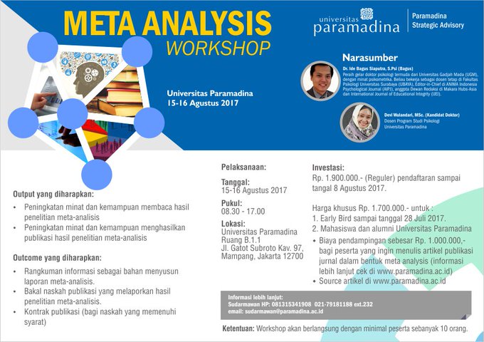 batas dftar #metaanalysis 8/8 Harga khusus u/ EarlyBird sd 28/7 | mhs&alumni @Paramadina
