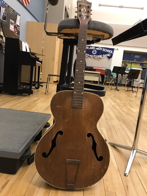 Thank you to Ms. Otis for this old-school guitar donation!! Very cool. #Guitar #Music #Education #FixerUpper pic.twitter.com/JnWT12v2Gg