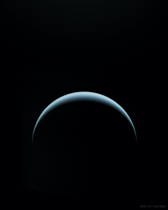 The crescent of Uranus, imaged by a departing Voyager 2 on February 3, 1986. #OTD pic.twitter.com/ah8G6PqiVC