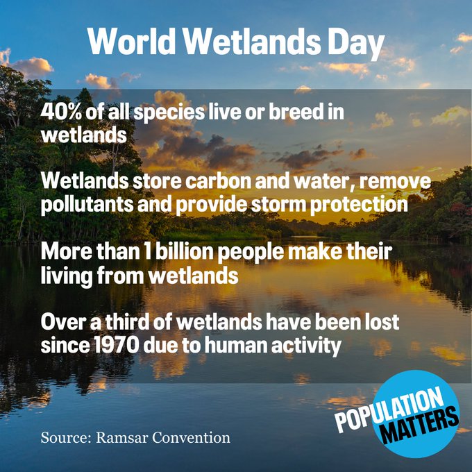 Today is #WorldWetlandsDay! Wetlands are incredibly important #biodiversity hotspots, yet they are under increasing pressure from human activity. To safeguard these precious ecosystems, we must end #population growth and our unsustainable consumption of resources. pic.twitter.com/3viccNg0DS