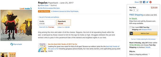 @AaronOzee's latest book, #Regulus, was just ranked by Amazon as the #1 New Release on Children's Book Bestseller List! pic.twitter.com/ufREkfFAYy