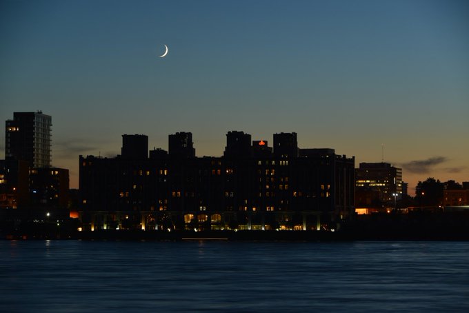 A waxing crescent moon, Mercury & Regulus are in this photo, but #Mercury & #Regulus are hard to see. #UrbanAstroPhotography #MTLmoments pic.twitter.com/hoRFhJNrRJ
