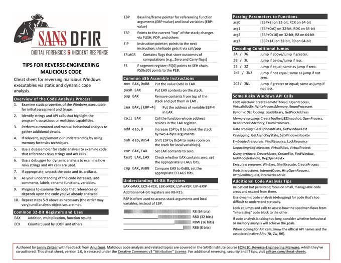 Tips for reverse-engineering malicious code - cheat sheet | by SANS eforensicsmag.com/tips-for-rever…