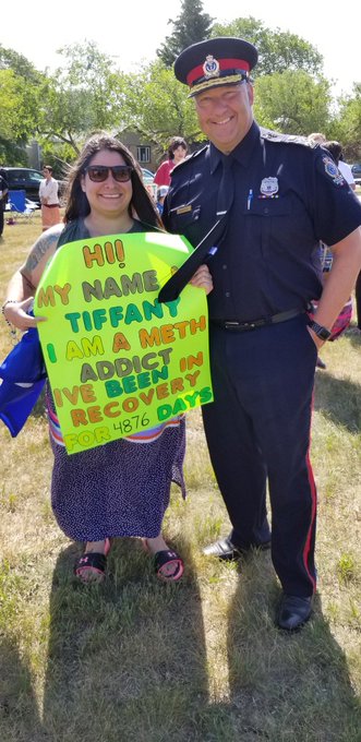 Thank you to Tiffany and all involved in today's Meth Awareness Walk in Regina! Our @reginapolice is proud to partner with @YorktonTribal and all community partners to ensure we take the addiction challenges head on in keeping our families healthy! #commitment #rootcauses pic.twitter.com/x9aohVkN6Y