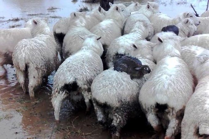 To escape rising floodwaters in NZ, wild rabbits took the comfortable route to higher landβcasually riding on the backs of sheep #smart pic.twitter.com/04KzEfnkbh