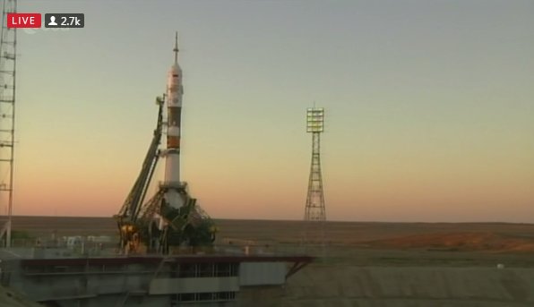It's bad luck for the prime crew to see the #Soyuz roll-out on the launchpad: but we'll get 3 front row seats for the real show Friday! pic.twitter.com/9XcSsDluul