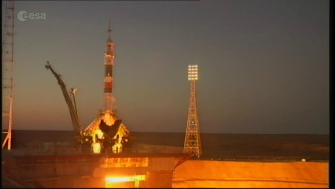 Liftoff for @astro_paolo @AstroKomrade & @Ryazanskiy_ISS on #Soyuz at 15:41 GMT | 17:41 CEST esa.int/vitalive #VITAmission pic.twitter.com/iXch4yV4Yv