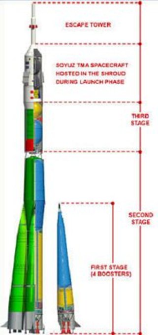 Here's a cool @esa diagram of the #Soyuz Fg rocket being used in today's launch showing the 20m 1st stage boosters,which burn for 2 mins... pic.twitter.com/1Po4eqHy4j