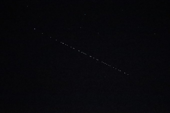 Desde #Tandil, #Argentina, el pasaje de los satélites #Starlink de la compañía @SpaceX @elonmusk. Algo realmente impresionante. pic.twitter.com/3uSTKf2Kzz