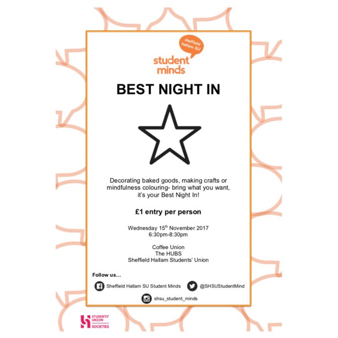 It's nearly time for another @StudentMindsOrg fundraiser and social!✨ #sheffield #student #mentalhealth #BestNightIn pic.twitter.com/X922rpGGtd
