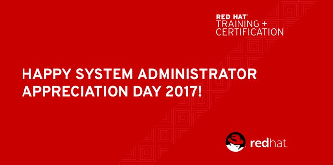 Thank a #sysadmin today! We know we will at #RedHat. Happy #SysAdminDay everyone. pic.twitter.com/3Y5PZu1DOS