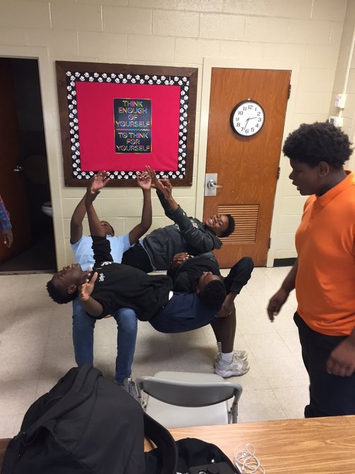 TEAM WORK! Problem solving at it's best. Week 3 of Conflict Resolution #theplacetobecme pic.twitter.com/uT06BFa3ic