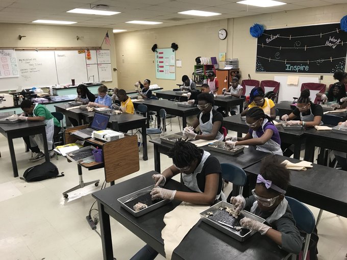 8th grade science partnering with ECU Geology to learn about topography and the hydrosphere. #ThePlaceToBECME @EcuGeology #ScienceRocks pic.twitter.com/KRvr0NmFxN