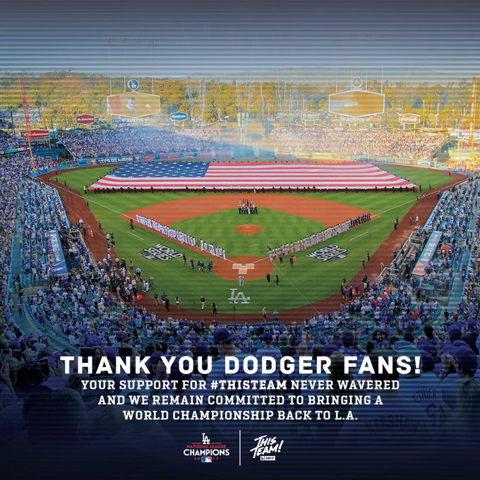 Thank you Dodger Fans! Your support for #ThisTeam never wavered and we remain committed to bringing a World Championship back to L.A. pic.twitter.com/5xaoDZ7QSs