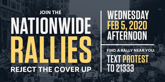 We must be clear that today’s vote is a free pass on abuse of power making #Trump an “elected monarch” as Sen Angus King said. Nationwide rallies are planned tonight to protect the Constitution. Find on near! Text PROTEST to 21333. pic.twitter.com/8Qeceg5A1F #ImpeachedPresident