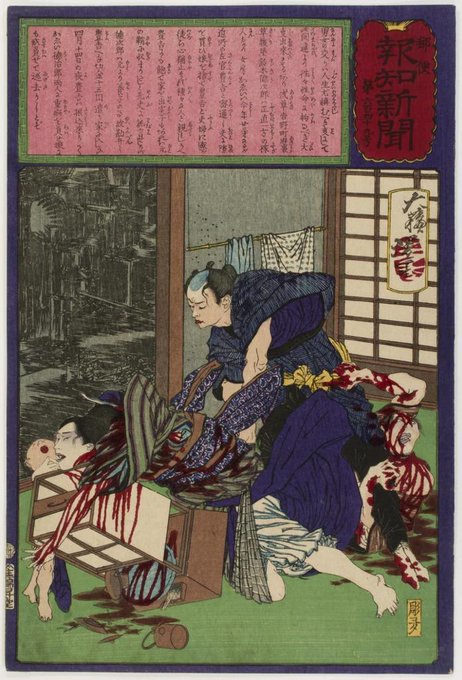 Regardez bien, c’est formidable n’est-ce pas! Et ce n’est l’œuvre d’aucun mangaka. Mais le travail préparatoire pour une estampe de #TsukiokaYoshitoshi en 1878. Visible à l’exposition « Meiji, Splendeur du Japon impérial » au @MuseeGuimet pic.twitter.com/1yzDo7Byea