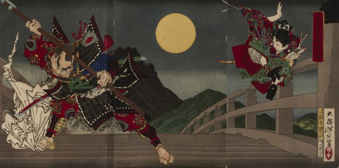 #Art "The Giant Twelfth-Century Warrior-Priest Benkei Attacking Young Yoshitsune for His Sword on the Gojo Bridge," 1881, by #TsukiokaYoshitoshi pic.twitter.com/R8pII4FDe1