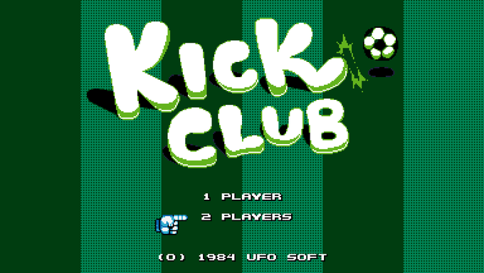 For #pixelart day, here's a game from #UFO50! Kick Club is a co-op arcade title about getting to the ball and then kicking it from enemy to enemy. Delicious treats are hidden around each level. Teach those other sports to play nice! #ドットの日