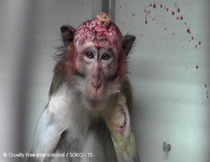 Monkeys in labs are subjected to painful, and irrelevant experiments They’re starved and restrained, they’re infected with diseases, objects are screw into their heads…